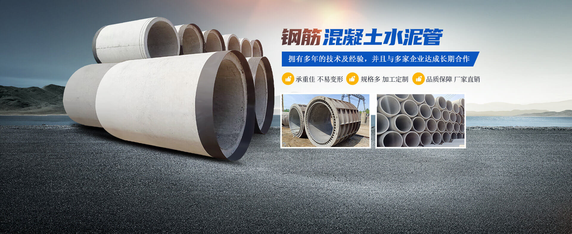 - 洛陽(yáng)運(yùn)曌建筑材料有限公司專(zhuān)于從事水泥制品開(kāi)發(fā)、制作、生產(chǎn)、銷(xiāo)售、工程服務(wù)為一體的綜合性企業(yè)。主要生產(chǎn)鋼筋混凝土排水管、鋼承口頂管、承插管、平口管、雨污井蓋、路沿石、水泥預(yù)制板、仿木圍欄護(hù)欄系列、畜牧系列等混凝土水泥預(yù)制品?! ∥夜旧a(chǎn)的鋼筋混凝土排水管是依據(jù)執(zhí)行標(biāo)準(zhǔn)GB/T11836-2023生產(chǎn)檢驗(yàn)、擁有三條懸輥工藝生產(chǎn)線(xiàn);型號(hào)300-3000;年生產(chǎn)能力達(dá)30000米左右,質(zhì)量是企業(yè)之本.........了解更多>>